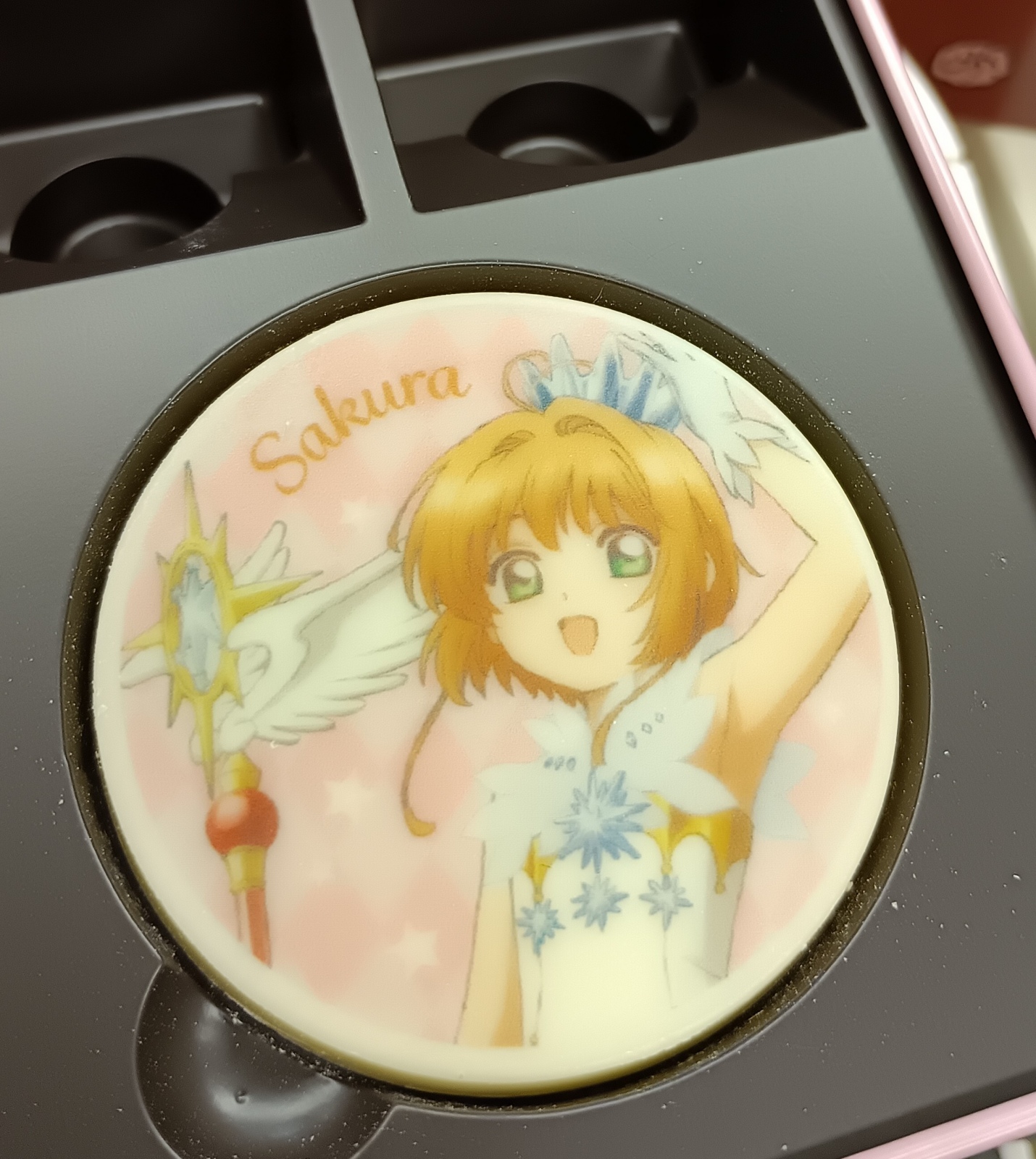 カードキャプターさくらのバレンタインチョコ 「おひとつどうぞ」と言って差し出されたチョコレート。そこには、カードキャプターさくらちゃんの可愛らしい御姿が!バレンタイン用のアソートチョコ缶で、さくらちゃん以外にも小狼、ケルベロスがいたり星型やハート型のミルク味にイチゴ味にホワイト味のチョコが。「さあ、どうぞどうぞ」チョコレート大好きこれは嬉しいサプライズ食べたいでも、でもこ、これは…「あまりに可愛いので 恐れ多くて頂けませんっ…!」と辞退したのであった。(今年のバレンタインは、これで終了ですかね…?)
